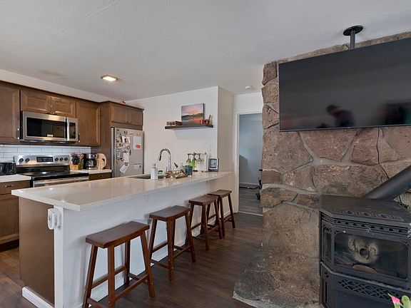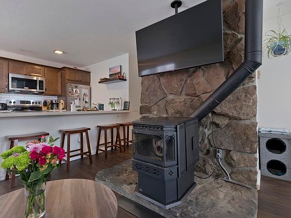 Conveniently located and fully updated two bedroom condo with a garage. Light and bright space with fully remodeled kitchen and bathroom featuring warm toned cabinetry, solid surface countertops, stainless appliances, large basin sink, plank flooring, pellet stove and a garage, this property is a must see! Meridian Villas is in very close proximity to Vons, restaurants & shops, and Sierra Star Golf Course. Located on the the Meridian Connector section of the Mammoth Lakes Trail System, the paved multi-use path connects with the Town Loop to Trails End Park and the Sierra Park Connector to Mammoth Lakes Library and the eastern end of Mammoth Creek Park. The free shuttle to and from Eagle Lodge picks up and drops off just out front of the complex.