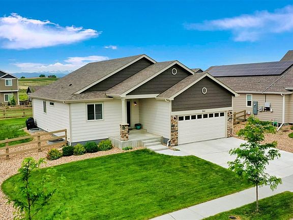 Small town living at its best! This immaculately maintained 4 bedroom 3 bath ranch is located in Berthoud's Heritage Ridge. Walk to schools, walk out the back gate to the private green belt, or head up to the community pool. This home features quartz counter tops, beautiful 42 inch cabinetry with soft close doors, central air, fully builder-finished basement, professionally installed landscaping including sprinklers. Fiber optic internet service to the house for working/schooling from home. Move in ready!