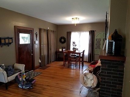 This home has all the charm you expect in an older home including the welcoming Front Porch! Wood floors throughout the home. Large Living Room with FP plus formal Dining Room. There is also a breakfast nook in the kitchen. All appliances stay. One BR with crown molding on main floor and 1 large BR upstairs (this is an airplane bungalow) large enough for several beds. Updated Bath sports a new vanity, granite countertops and tiled tub/shower. Main floor laundry is a Plus! Detached over-sized 1 car garage, nice fenced backyard with lovely patio. New Roof and water heater. Humidifier, water filtration system. Home to be sold "As Is."