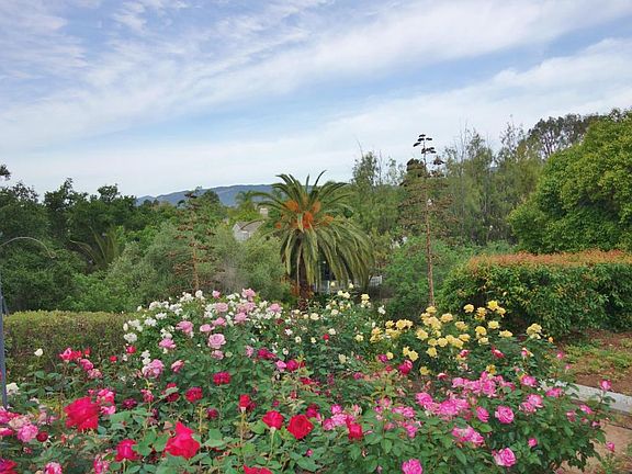 Rarely avail all 1 level & freestanding ''cottage'' tucked in the back of complex. Fabulous back yard with Mtn Views & gorgeous rose garden! Separate front patio is perfect for morning coffee or gazing at the beautiful mountains! Vaulted wood ceilings, new paint & carpet, 2 car garage, lots of light & more! Pool in complex, close to State, shopping, bus! This special location is one of a kind!
