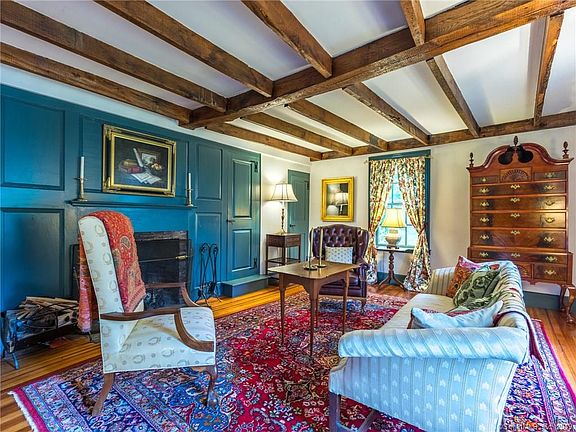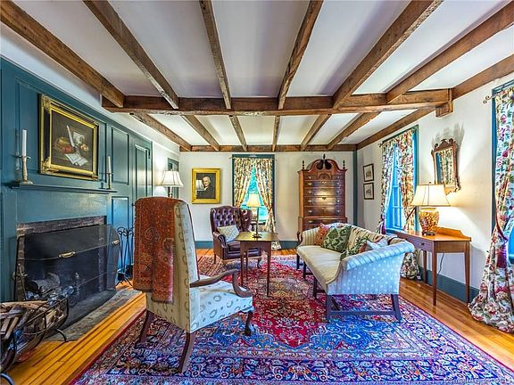 Originally built as Suffield's Saddle Shop, Consider Williston built this structure to withstand the test of time. Lovingly updated by it's current residents, this charming and cozy home offers a chef's kitchen, two large bedrooms and two full baths along with delightful spaces for dining, study and relaxation both indoors and out. Entering through the front door reveals a living room with a large stone fireplace and exposed beams along with a formal dining room that opens to the den and kitchen. One bedroom is on the main floor. The rear entry is through the kitchen via a wonderful and inviting stone patio. The barn has been restored and holds 1 car with the possibility of adding a second bay. There is also an unfinished bonus room above the garage. All this is on a beautiful west facing flat lot that offers sunset views.