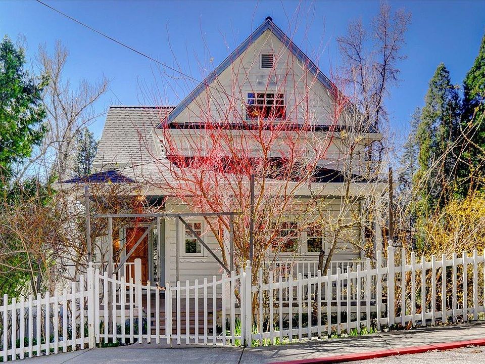 Charming Victorian in the heart of historic downtown Nevada City, just steps away from retail, dining, and entertainment. This unique three-story residence is perfectly situated on a hilltop lot overlooking a beautiful garden, walking paths, and seasonal creek. The home is three levels with three residences, each with their own private entrance, living room, kitchen, bedroom(s), laminate floors, and laundry. The main level is a 3-bedroom one bath with an enormous kitchen that overlooks the covered front porch and quiet street. This level also has a gas fireplace in the living room and sunny views of the back and side yards. The lower level is a bright 2-bedroom one bath unit with a large living room, kitchen, and laundry room. The upper level is accessed through the covered side deck and is a 1-bedroom one bath unit with granite countertops and abundant natural light. Plenty of additional storage and shop space available under the home. Endless opportunities await as either a primary or investment home.