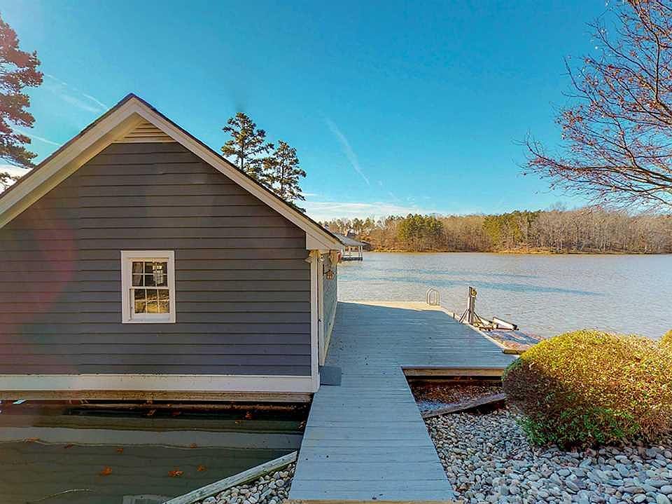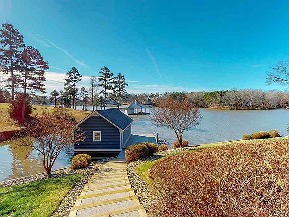 REDUCED! What a View!!!!!! Gorgeous lakehouse in upscale neighborhood, gated Oak Pointe with 1.74 acres. Kitchen with granite, living room, dining room, laundry, half bath and master suite on main level. Upstairs 2 large bedrooms, full bath and small office area. Move in ready to enjoy this coming spring and summer. Security system. Sng slip enclosed boat house to keeep boat cleaner & with an awesome view. New fire pit area to enjoy the quiet evenings with a beautiful view. 541 Oak Pointe Dr. Semora, NC
