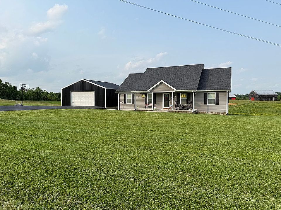 Welcome to this beautiful home situated on 3.28 acres. It is a 1500 sq ft home with 3 bedrooms and 2 full bathrooms. This home features an open floor plan, laundry room, spacious bedrooms and a walk in closet in the master bedroom. Outside you will find a 30x30 detached garage with electric and a 40x60 barn. The barn features a hay loft, horse stalls, electric and water, office, a run in shed attached and a spacious gravel lot. The property is completely fenced and is also equipped with an underground dog fence. Enjoy the nice sunsets on the front porch. This is a very well maintained property and is ready for showings!
