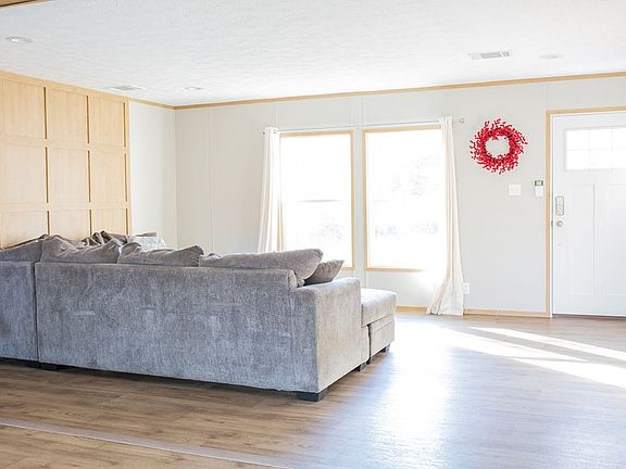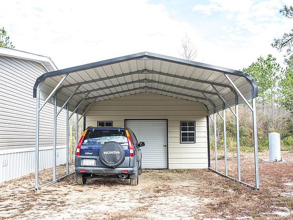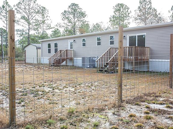 Do you want space? This is a must-see 2,432 square-foot double-wide mobile home that sits on 5.38 acres in Hinesville! This is a 2021 Clayton Home that features a spacious 4 bedroom, and 3 full bathrooms with an open living room/dining room/ kitchen area. The living area separates the large primary suite from the other 3 bedrooms, family room, and flex space providing privacy. The living area is open with plenty of natural light. The kitchen is modern with stainless steel appliances, a walk-in pantry, a breakfast bar, tons of counter space, and cabinet space. The main bedroom features an en-suite with a tub, a walk-in shower, and a walk-in closet. Secondary bedrooms are great sizes- very versatile for your needs. This home also features a deck in the backyard, and a carport with an attached 10'x10' storage shed. Book your showing today!