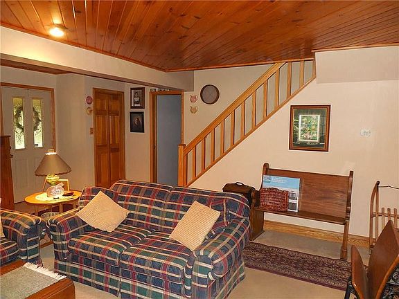 This home is situated on a very private 5 acres and has wonderful inside and outside living space. The very large living room has shiplap ceiling and a bay window with an open staircase to the second floor. The kitchen and dining have wonderful hardwood floors and are Open to the family room. The new full bath on the first floor has a 5ft. walk-in shower and ceramic floor with beautiful vanity and linen closet . The master is also on the first floor. The family room is magnificent with vaulted ceilings and a stone fireplace and an open loft above and shiplap ceiling and a bay window. Upstairs is 2 very nice bedrooms with plenty of closets and the loft is 14x8 and a full bath. The fully screened in porch is 20x14 and a wonderful place to hang out and entertain. And an Open deck 22x14 There is one garage under the house and one very large detached with a 40ft x 12ft port and a 2nd story. HSA Home Property