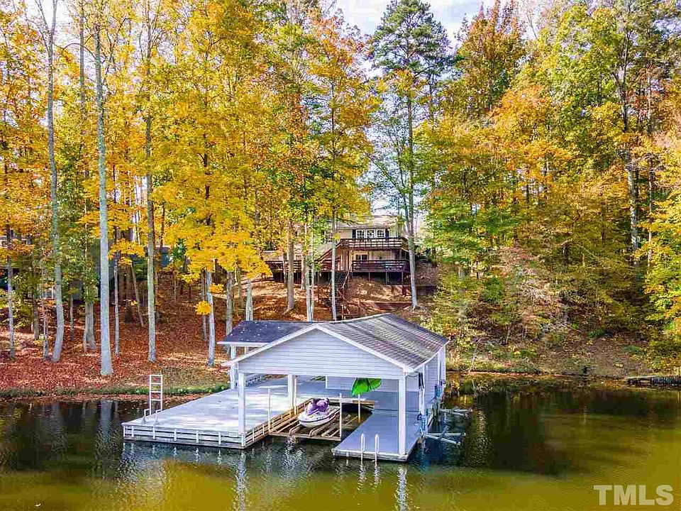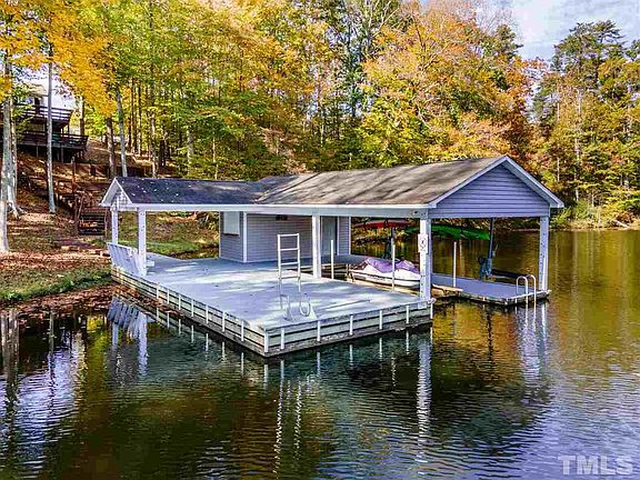 Hyco Lake Bungalow featuring all the lake has to offer, everything included!!! Single Slip Boat House with 2 jet ski lifts & large deck. Low boat traffic in the cove for the kids to play & swim without worry. Easy walk up to the house where you will find a large lower patio and upper deck for relaxing and entertaining or just looking at the beautiful water! Outdoor firepit! Lower level with living room, dining, bed and bath and main level with spacious kitchen, family room, two bedrooms and bath.
