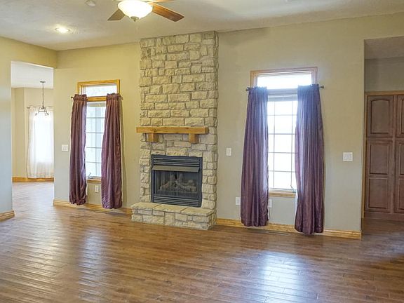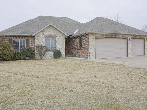 All brick & stone sitting on a quiet cul-de-sac in Leabrooke Estates. Just some of the many upgrades include hand scraped hardwood floors, security system, stone gas fireplace, large utility room, solid wood panal doors, plumbing & electrical fixtures. Nice blend of hardwood, carpets, and tile floors. Private master suite with jetted garden tub, walk-in shower, dual vanity sinks, and his & her closets. Large fenced back yard with gardens, backing up to a farm with a panoramic view of the Ozark Hills from the covered patio. Large 3 car garage with extra deep bay. Neighborhood amenities include tennis, volleyball, walking trails, lakes and this home is just steps away from the neighborhood pool.
