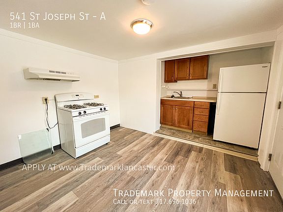 541 St Joseph St Apt A 1 Bed 1 Bath This nice and spacious 2 story apartment is ready to be your new home today! This apartment has it's own entrance on the side of the building and a nice patio and yard area. The first floor is a nice and spacious kitchen. The 2nd floor offers two rooms with plenty of closet space and a nice full bathroom. $50/adult to apply (go to www trademarklancaster com to apply). Tenant pays for gas and electric. Tenant responsible for snow and lawn. Tenant also responsible for a $45/month Resident Benefit Package (includes renters insurance, pest control, 24 hour maintenance line) Min 600 credit score and good rental history to get approved
