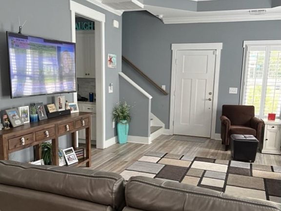 Beautiful four-bedroom home with pool just blocks from the beach. This is a primary residence, never rented although it is zoned for short and long-term rental. House has high ceilings, double trey in the family room and crown molding throughout along with LVT flooring throughout the house. All windows on the first floor have custom built plantation shutters. Master bedroom is on the main floor with en-suite and custom walk-in closet. Beautiful kitchen with stainless steel appliances, propane range/oven and granite counter tops. The eating area is just off the kitchen and has built in bench for both seating and convenient storage. There is also seating at the counter adjacent to the eating area. Upstairs has three large bedrooms of which one has its own full bath and walk-in closet and a second full bath in the foyer to the three rooms. Additionally, one bedroom has a custom-built triple bunkbed for additional sleeping. Ceiling fans are in each bedroom, family room and screened in porch. Home is equipped with security monitoring on all windows and doors on the first floor with security cameras located at the driveway, front door, and swimming pool. Two car attached garage with a driveway that is 3 cars wide. Backyard is your own personal oasis, a large screened in tiled porch that leads out to the patio and a 10,000gallon salt water inground pool surrounded with four beautiful Palm trees and a raised flower bed that runs along the width of the back yard. An outdoor shower with privacy walls for rinsing after the beach and prior to jumping into the pool. Also in the back is a 30x10ft concrete pad with 50amp circuit for your RV. An additional 20x10ft pad contains a 5x7ft storage shed. The back yard is surrounded by a 5ft privacy fence. The exterior of the home is hardy board, and a metal roof adorns the top with 6-inch gutters. Sprinkler system throughout the front and back sodded yard.