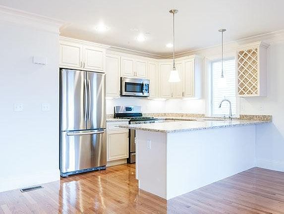 WOW! There is nothing quite like this East Boston Jeffries Point Waterfront town house overlooking the harbor! Brilliantly renovated on two wonderful levels and so private, no detail was spared and the result is simply stunning. With the living room's wall of glass, the views of the water and city will dazzle you both day and night. The light pours in and if ever there were a happy home, this certainly is it! There is an incredible welcoming feeling and great vibe throughout. And of course, all the best features are offered from the double crown molding to the high ceilings, wood floors, such incredible character even though it is all new construction inside. The gas fireplace will keep you cozy and the sliding glass doors bring in the ocean breeze. No matter the season this home will delight. The open floor plan is ideal and maximizes the views from every inch of the home. You will adore the custom kitchen with soft cream cabinets, a sleek backsplash and rich granite countertops. Frigidaire stainless steel appliances including a gas range, are terrific and the breakfast bar completes the package. Two extraordinary marble bathrooms to accompany the three well sized bedrooms make this the perfect, well-designed home. A walk-in closet, in unit laundry, central air and a private deck have you sold! Of course there is also one off street parking space for the ultimate convenience. This neighborhood is truly the best of the best. Surrounded by the harbor, beautiful parks and a quiet, friendly community, it is hard to believe a place like this exists so close to all the conveniences that are steps away, including the T, great restaurants, sailing, shopping, Water taxi and so much more! Enjoy nearby tennis, hockey and basketball courts too. Just minutes to Downtown, yes, it is the best of the best! The tenant pays a gas and electric bill, which are separately metered. The landlord's deposits are first month's rent, last month's rent and security deposit. There is a broker's fee equal to one month's rent and a $25 application fee per tenant. There is no smoking allowed. One parking space is included in the rent. Available Now