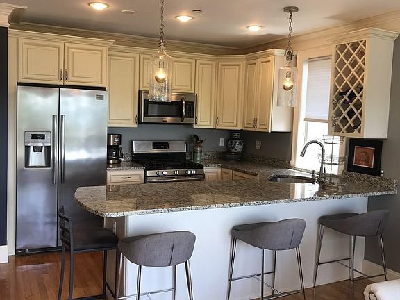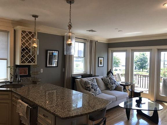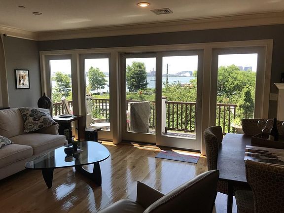 3 bedroom, 2 Bath duplex. This unit features a private balcony and private roof deck with stunning city and harbor views. Come home to beautiful Jeffries Point in East Boston - and you will never want to leave. Enjoy this stunning 3br, 2bath home with breathtaking views of the harbor and downtown. Spacious 1454 sq.ft. , which also includes a small office, a laundry room, a large deck off the kitchen/living room and a roof deck that offers amazing views of the fireworks, passing ships, and sailboats galore. Floor to ceiling windows, hardwood floors, granite countertops, gas fireplace, open floor plan, washer/dryer in unit, outdoor space and an exclusive off street parking spot right outside your door. And - with a resident pass, you can get gate access that puts you right into the tunnel to shorten your commute. Maverick Station is less than a ten minute walk. Blue Bikes 2 min walk away . Water Taxi steps away. Steps to DownEast Brewery, Watershed Museum and KO Pies.