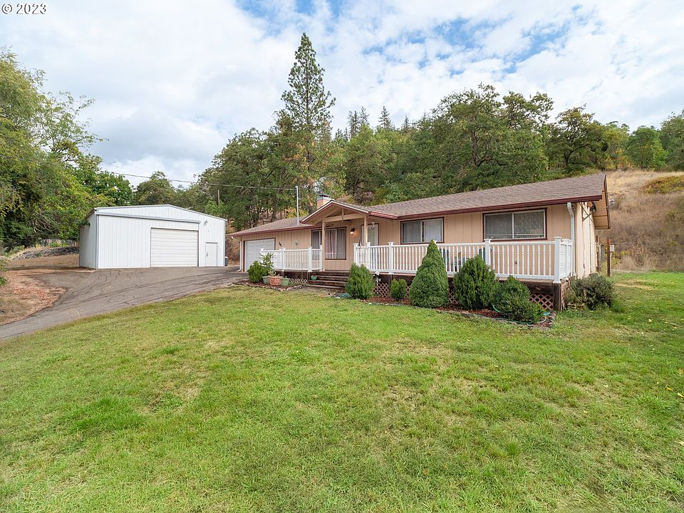 Escape to your dream countryside oasis - this charming 3-bedroom, 2-bathroom home offers the best of both worlds! Situated on a generous 2.63-acre lot on the tranquil outskirts of town, you can enjoy the peace of country living while being just minutes away from all the conveniences of Roseburg and Sunshine Park. You'll love the massive 1260 sq ft shop with power, ideal for hobbies, storing toys, or even setting up a home business. Step inside to experience comfort defined by brand-new carpeting and an updated kitchen featuring stylish tile floors. The living area and kitchen flow seamlessly into the dining room, where French doors open up to a spacious outdoor covered back patio, perfect for entertaining guests. For those colder evenings, the living room's pellet stove offers a cozy setting to unwind. Additional features include an indoor laundry room, attached garage, and charming front porch. You'll appreciate the seclusion of your backyard surrounded by forest and the privacy between neighbors. Don't miss your opportunity with this move-in-ready country home with property and shop! Properties like this don't pop up often. Schedule your private tour today!