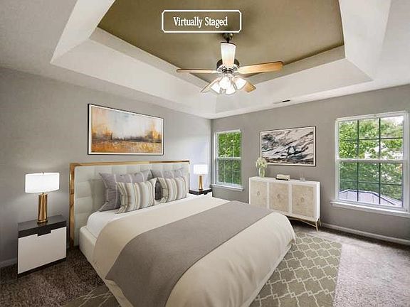 Come see this charming home now on the market in Holly Springs! Enjoy cooking in this stylish kitchen with stainless appliances, decorative backsplash, ample cabinetry and a center island, great for food preparation. Entertaining is a breeze with this great floor plan complete with a cozy fireplace. A luxurious primary suite, complete with a walk-in closet, a ceiling fan and an en-suite bathroom with double sinks as well as a separate bathtub and shower. Entertain on the back patio, perfect for barbecues. Don't miss this incredible opportunity! This home has been virtually staged to illustrate its potential.