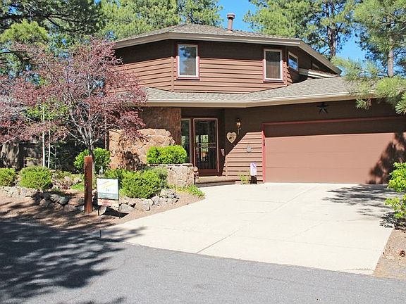 Welcome to Forest Highlands! This cabin is mere steps from the Canyon Clubhouse, driving range, pool and tennis complex. Enjoy watching your fellow residents warm up on the driving range or even the elk passing by from your over-sized deck. Forest Highlands is a wonderful guard-gated golf community located in Flagstaff, Arizona. In addition to two golf courses, it has two clubhouses, swimming, tennis, a fitness center and fitness trails, stocked fishing ponds and so much more. Membership to Forest Highlands included in the HOA. New Roof 2009, New Carpet 2009, New Paint outside 2009, New Kitchen and appliances 2005 - totally updated and ready for you to move in. This home includes 2 fireplaces tennis, 2 golf courses, pool, restaurants, gym, walk to driving range, 1st tee, tennis, pool, and restaurant/bar. No need to drive after you get here! Great home to enjoy the winter months. Awesome sledding right out the back door.
