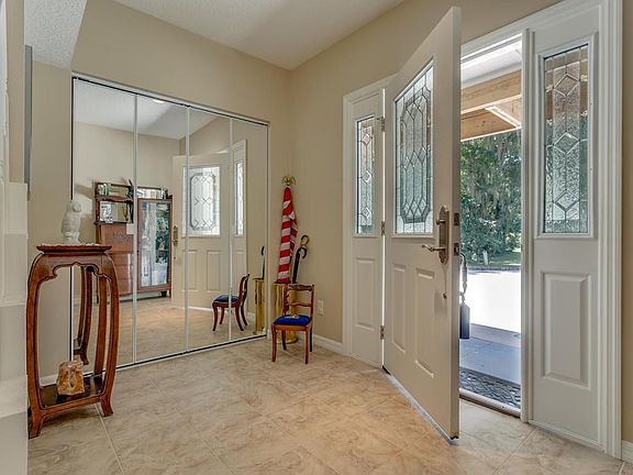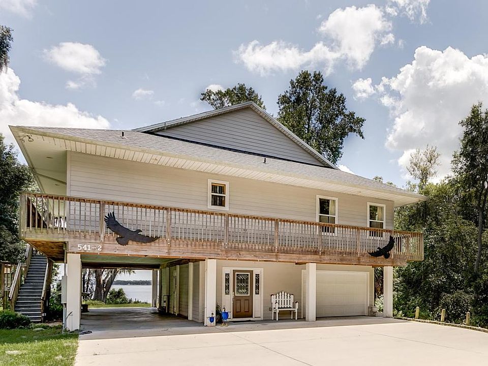Escape the City Life! Take this opportunity to have your own oasis. This is a well built, riverfront home located north of Palatka and situated on over 8.8 scenic acres. This home is high and dry and does not require flood insurance! The home was constructed in 2007 and is in excellent condition. The home has great river views and has an open plan with lots of light. The kitchen is open to the great room. There are around 750 sq.ft. of decks surrounding the home to enjoy the outdoors. The bedrooms are very large and there is a first floor guest suite w/bath and a large garage. Enjoy nature and the outdoors on this large tract bordered by a creek on the south side of the property. If you would like an easy to care for main home or getaway with privacy and beautiful trees you need to come see this home!