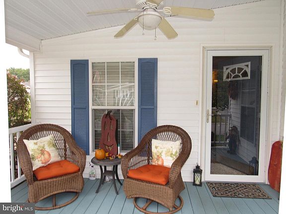 R-11612 Come see this beautiful home in one of Delaware's premiere 55+ communities. This home is immaculate and shows like a model home! Featuring a large sunny kitchen with white cabinets and breakfast nook. Sit by the fire in the family room on chilly winter nights. There are 2 large bedrooms with walk in closets. Enjoy your Spring and Summer on the covered porch or deck with motorized awning. There is an oversized garage . Lush green lawn and beautiful gardens give this home much curb appeal! There is no HOA fee, but the land lease is$605 a month.