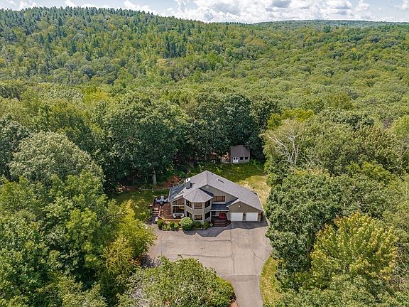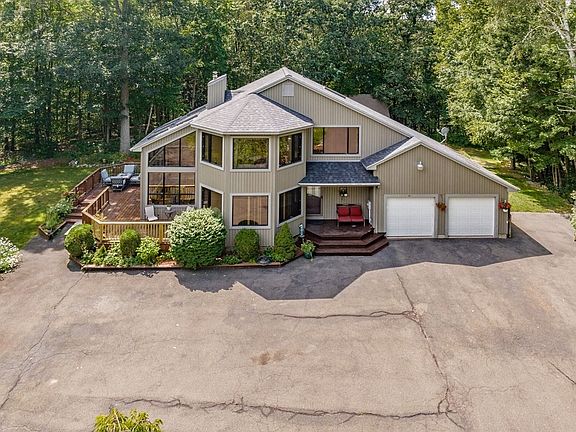 LOCATION! Beautiful Country setting is where you'll find this Unique 3 bdrm, 2.5 bath Contemporary style home right on the Russell/Westfield line, just minutes from Westfield State University. So many windows offering peaceful wooded views through-out this home make it a place you can't wait to come home to! The kitchen w/ a big island overlooking the living rm is perfect for entertaining, the dining rm is amazing with soaring 2 story ceiling & access to a wrap around deck allowing plenty of outside entertaining space. Pantry, 1/2 bath & access to garage round out the 1st flr. 2nd flr has 2 bdrms & full bath. Lower level w family rm, bdrm & full bath is ideal for an inlaw or teen suite. Upgrades: New Roof 2022 50 yr warranty, newer double walled oil tank, carpet on stairs and lower level in 2022, well pump in 2018,2 new gar door openers, refrig & dishwasher 2021, newer ht wtr htr. Two 10x20 sheds remain...1 is a 2 story shed which could house a vehicle. Huge driveway great for parties!