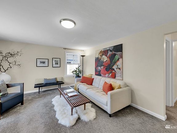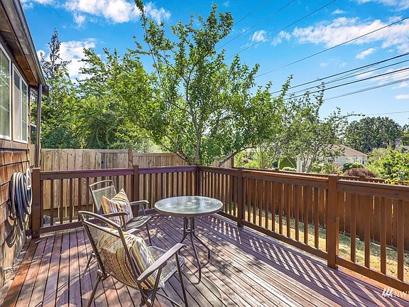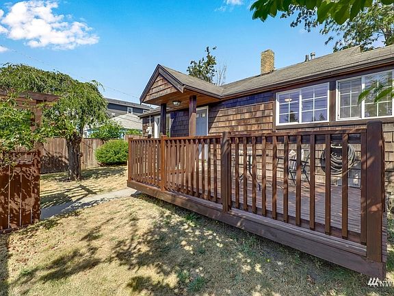 Spacious 3 bedroom 2 full baths and a converted garage with 2nd kitchen and 3/4 bath, located in the sought after Seaview Neighborhood just blocks away from the pulse of the West Seattle Junction. Living room has a picture window offering lots of natural light and scenery. The kitchen has many windows and eating area with tiled floor. You may be happy to see the large bedrooms with nice size closets. Walk-in laundry room with storage. The deck in front offers a relaxing space. Converted garage with amenities and view deck with peek-a-boo views of the Sound and Olympic Mountains. Garage can be converted back for covered parking. The yard is fully fenced, and there is off-street parking at alley. Come see what this home may have to offer you.