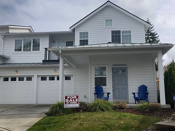 Beautiful townhome looks and feels like new. 2 car garage, fenced backyard & peek a boo views of Puget Sound! Main floor has bedroom with bathroom, family room, gas fireplace, kitchen with farmhouse sink, shaker cabinets, quartz counters & stainless appliances. 2nd floor master bedroom with 2 walk-in closets, bath with dual vanity and tile shower. 2 more bedrooms, large bathroom and spacious loft/bonus room with view deck. Vaulted ceilings, front/back covered patios, security system, tankless hot water & zoned radiant heat. Very close to the water & ferry terminal. An easy commute to Boeing or I-5.