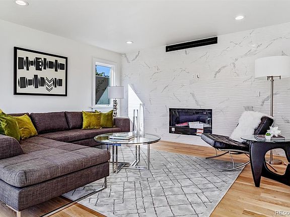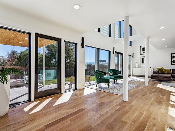 Stunning contemporary remodel, a jewel box in Hilltop. Volume ceilings and two-story glass overlooking the back yard and patio with views of Denver beyond. Open great room with new linear fireplace opens to the patio and back yard through bi-parting sliding doors creating a great indoor/outdoor lifestyle. New white kitchen with center island features soft close cabinetry, quartz counters and stainless appliances. Wide plank white oak floors grace the main level. The second floor hosts 3 bedrooms and 2 baths including the master suite with "spa" style bath, generous walk-in closet and its own laundry. The basement includes a family room, exercise/play room, 4th bedroom and 4th bath. New windows, newly re-designed exterior, refreshed landscaping, new driveway and front walk, new roof, all new finishes, hardware, fixtures and lighting throughout. There are numerous energy efficient and smart features in this home including new gas forced air furnace and central AC on the main and lower level with NEST thermostat, energy efficient split heating and cooling systems on the second floor, control the Bosch refrigerator and range from an app on your phone, open and close the garage door from an app on your phone, finger print recognition door locks on the front door and garage entry door. Electrical system is also roughed in for a solar system. This one is stunning!!!