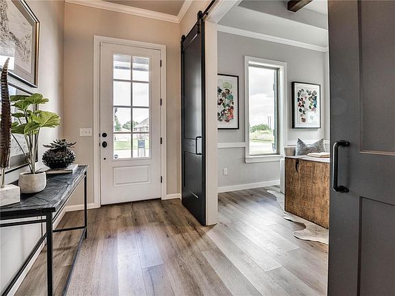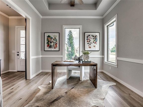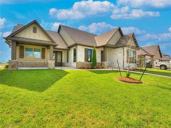 Great location with minutes to community amenities and a short drive to Oklahoma City! This custom built home features 4 bedrooms, 3.5 bathrooms, an open floor plan with study. There are 3 bedrooms/ 2.5 baths on the main level and a 4th bedroom and bath upstairs (that can easily be enjoyed as a second living space). The kitchen features a large granite island, butler's pantry, and gorgeous tile backsplash with pot filler. Laundry room houses the washer/dryer along with a unique space to rinse off your boots or even bathe your furry friend. Enjoy the waterview while sitting fireside on the patio. Even includes a storm shelter in the third car garage. Welcome home!