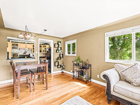 Stunning inside and out, this updated ranch near Old Town Arvada offers modern updates that perfectly blend with timeless, classic designs. Beautiful mature landscape welcomes you from the curb and flows into a light and bright open floorplan boasting hardwood floors, charming cove ceilings, and abundant natural light. The living and dining areas unfold to the updated kitchen offering ample glass-front cabinetry, black appliances, and a built-in pantry. Both bathrooms have been fully renovated and all new plumbing was installed in the home in 2021. Two large bedrooms are located upstairs, and two secondary bedrooms reside on the lower level, offering endless living options. Family movie nights or watching the big game is ideal in the finished basement which features lush carpeting and a large den. Step outside to a spacious backyard to dine al fresco on the patio in a private fence yard with a lush lawn. Additional features of this turn-key ranch include a new washer and dryer, a radon mitigation system, a sprinkler system, and a detached 2-car oversized garage. Ideally situated on a large corner lot within minutes of neighborhood Jefferson County schools, parks, shopping, dining, and endless entertainment in Old Town Arvada, 5410 Garland Street is truly a gem in the heart of it all. Do not hesitate to book your showing today!