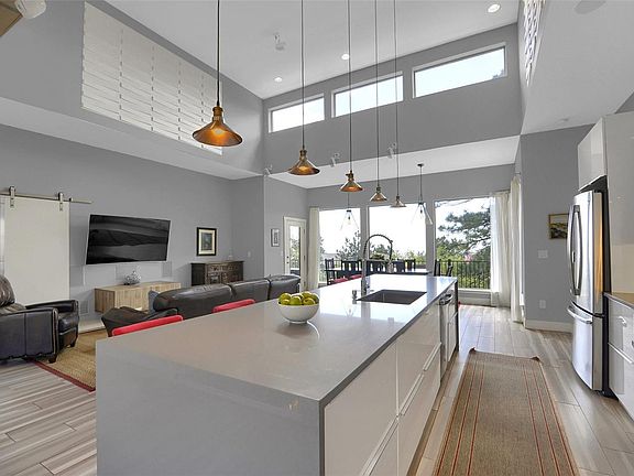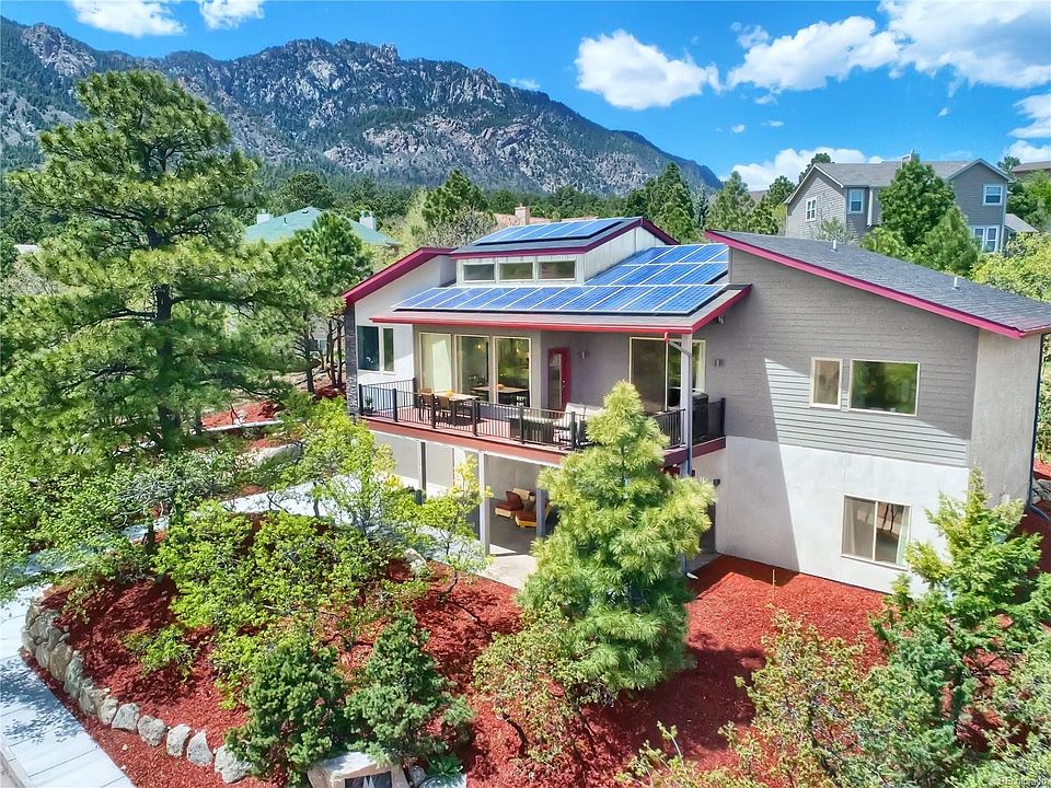 This like new solar powered modern home offers a peaceful escape for you and your family to enjoy the stunning city and mountain views. The open modern concept features vaulted ceilings and large windows to allow ample light and opportunity to enjoy the scenery. A large walkout from the main living area sits above the city and offers breathtaking panoramic views. The main floor offers a large open great room, second family area (divided by a barn door), the master suite and 2 additional bedrooms. The house is interactive with the smart home system, which allows for music to play throughout the home; synced with lights and media. Downstairs is a separate apartment suite featuring a fully furnished, 1 bed with attached bathroom, walk-in closet, washer/ dryer, kitchenette, and a small living room. This beautiful apartment has its own walkout with mountain views and private entrance.