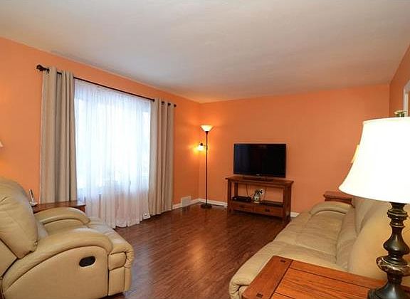 Clean & sunny brick ranch in desirable sidewalk community of Clearview Estates!! Eat in kitchen features peninsula with cooktop, tile backsplash, refinished cabinets, and new Pergo flooring. New carpet in all bedrooms, fresh paint throughout, remodeled bath, and a 4 season sunroom. Family room with bow window and new flooring. All new interior doors, and new front and side porch storm doors. Freshly painted walk out basement - great for storage, or offers great space for finishing! Cul-de-sac street close to neighborhood pool and playground.