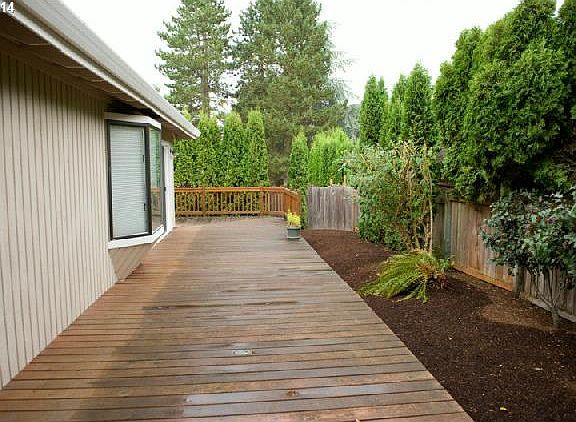 High qlty, custom-blt contemp ranch on big cul-de-sac lot in prime Rock Creek nbrhd! Freshly-painted all-cedar siding, tile roof, vinyl windows, new wrap-around cedar decking. Vaulted great rm w/bay window & brick FP, freshly tiled kit w/full backsplash, MBR w/X-LG tiled shower &floor, skylight, walk-in closet. A/C, 93%-efficient gas furnace. Finished gar w/new opener. Priv atrium-style entry w/synthetic (extended longevity) decking.