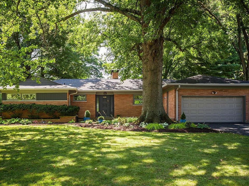 NEW PRICE!! Wonderful opportunity to purchase this stunning Mid-Century Modern ranch that has just undergone a brilliant remodel. This 4 bedroom, 2 full bath, brick ranch is nestled in a cul de sac in the Dunn Elementary School district. As you walk through the foyer, you are greeted with a bright, open concept Living Room and Kitchen accented by a massive picture window overlooking the large, well manicured back yard. The Living Room also boasts a characteristic Mid-Century Modern multi-story, wood-burning fireplace with wiring for mounting a television. Enjoy entertaining in your new gourmet Kitchen that is outfitted with GE Cafe appliances, a large breakfast bar, quartz counter tops, a custom pantry and spacious, premium cabinetry with upgraded features.