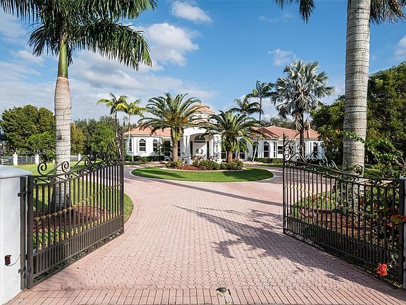 Highly renovated estate in sought after Sunshine Ranches on a very private 99,919 sqft lot. Enter through your own elegant private gated entryway & down a long winding driveway w/ 3 car garage & porte cochere! A grand foyer welcomes you to this freshly renovated 5 bedroom, 4 bath plus office & movie theater (large 5th bedroom can be used as game room/gym). New chef's kitchen with stainless steel appliances & breakfast area. Family room w/ bar & working fireplace, formal living room w/ volume ceilings & massive picture window displaying endless views. Completely renovated throughout. Fabulous resort style backyard with pool, spa and extensive patio & covered porch, an entertainer's delight. Located just off I-75 for easy commute to Miami & Fort Lauderdale. GPS address- 5410 Volunteer Rd.
