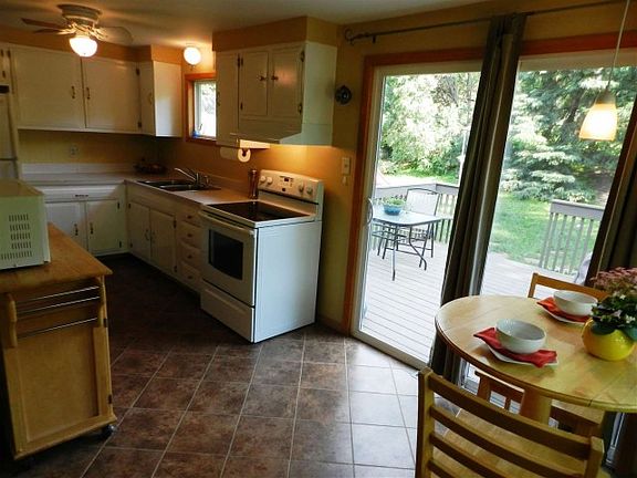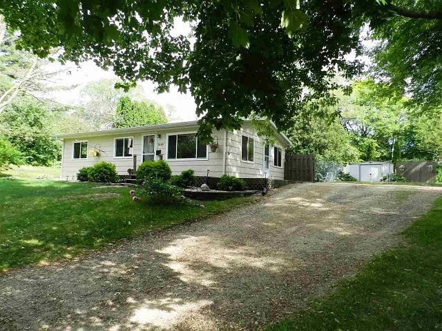 Carefree home w/many updates on serene setting. NEW: WINDOWS throughout, BATH w/ Slate floor, surround & backsplash, DOORS, TILE in kitchen, H2O HEATER. Roof, Gutters & rear Deck 2008. Furnace & Added A/C 2005. LL is dry & ready to be finished. Wrap around deck views park couple doors down. Spacious yard is extensively landscaped w/mature rear boundary trees for privacy AND buried drain tile takes the backyard water to road, away from home & beds. Room for garage. Home lives larger than its size in & out!