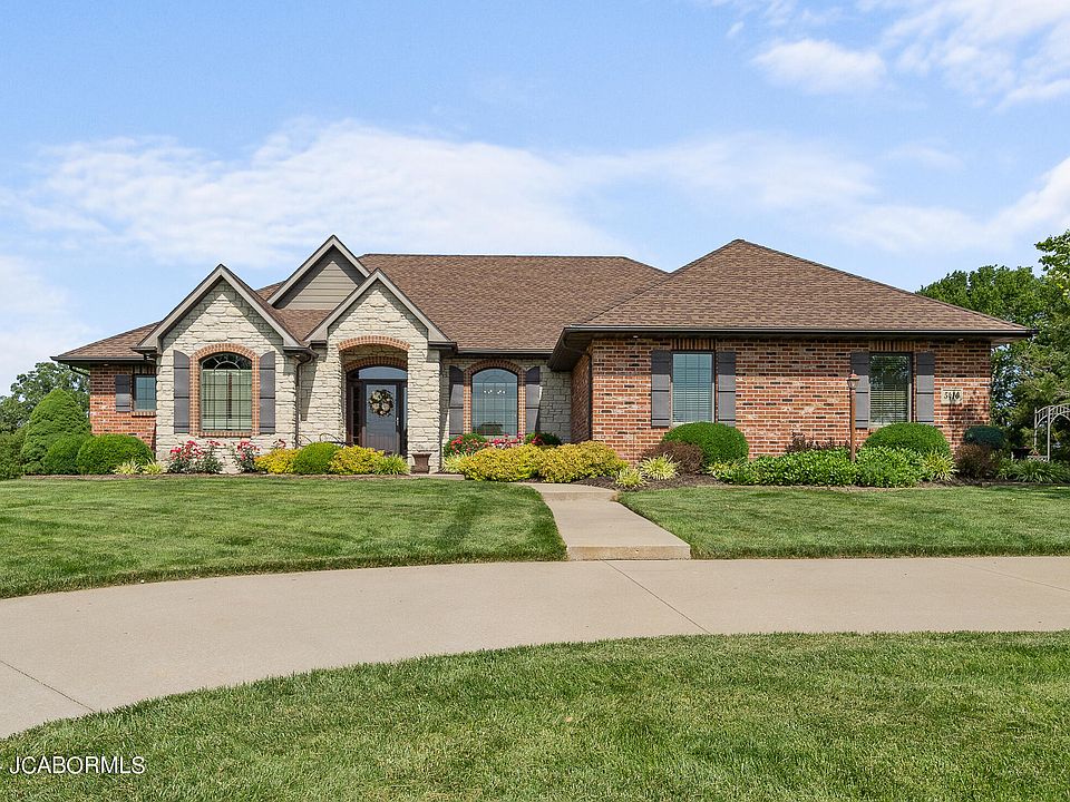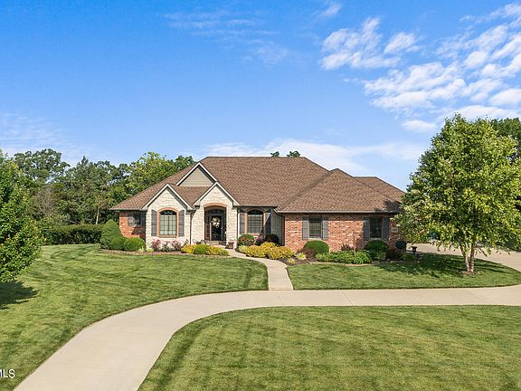 $10,000 SELLER CREDIT!! Stunning 4-bedroom, 3.5-bath custom brick home on 1.43 acres. The main floor w/ 3 bedrooms, 2.5 baths, a formal dining, & split bedroom design. 2 bedrooms share a Jack & Jill bath w/ separate sink areas & are adjacent to a sitting room. The chef's kitchen boasts a breakfast bar, granite countertops, gas cooktop, Advantium oven, & walk-in pantry, overlooking the Breakfast room & Living Room. The fully finished basement w/ large rec room, full kitchen w/ island, hearth room, wine cellar, & ample storage. All bedrooms have walk-in closets. Outside, enjoy a circle drive, gorgeous landscaping, sprinkler system on all 4 sides, central vac, geothermal water furnace, & a covered porch overlooking the patio & in-ground pool. This home is everything you've ever dreamed of!
