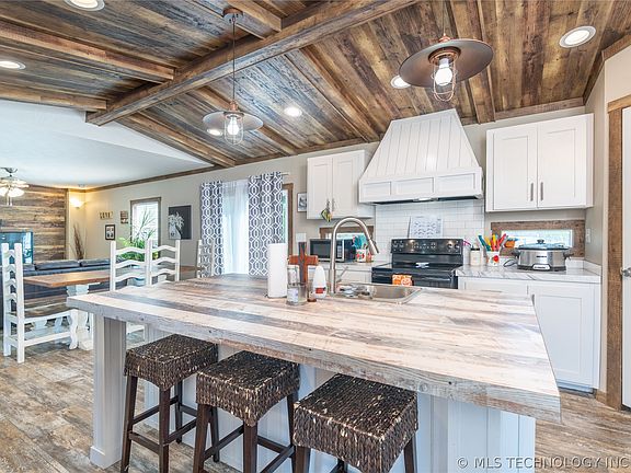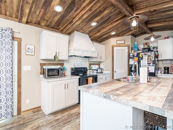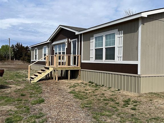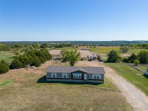 This home offers 4 large bedrooms, 2 baths, and 2 living rooms on 4 acres M/L. Home is in PRISTINE condition and on a PERMANENT FOUNDATION and never moved from present location as it was purchased new. Beautiful woodwork Open Floor with a Split floor plan with Master ensuite bedroom opposite the other bedrooms. Master bath has a massive impressive shower and soaker tub. 2 living areas, walk-in pantry. All bedrooms have walk-in closets. Nice 220’ x 200’ arena on the backside of the property. The panels will not stay. This spacious home is perfect for a growing family, enjoy one living room close to the master suite and the other close to the opposite end bedrooms. This property is located on a private road for your peaceful, quiet county living. Close access to Hwy 412 for your easy commute. Close to Lake Keystone and Hallett Raceway. Set up your showing today!