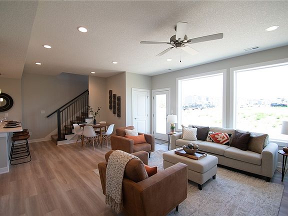 Waterford Creek South Townhomes with a modern design. You'll love the open concept and the abundance of natural light. Open kitchen with white cabinetry, snack bar, quartz counters, pantry, stainless steel appliances (Refrigerator, Stove, microwave, dishwasher, washer and dryer all come with this unit!). The kitchen opens to the dining area, open patio and great room to make this perfect for entertaining. Upstairs you'll find a multi-functional loft area which can be used as a library, office, playroom or reading nook. Upstairs is also the large master bedroom & bath as well as two additional bedrooms, a full bath and the laundry room. Rounding out this quality built townhome by JJ Larson Properties is an association to cover lawn care and snow removal. Waukee Schools.