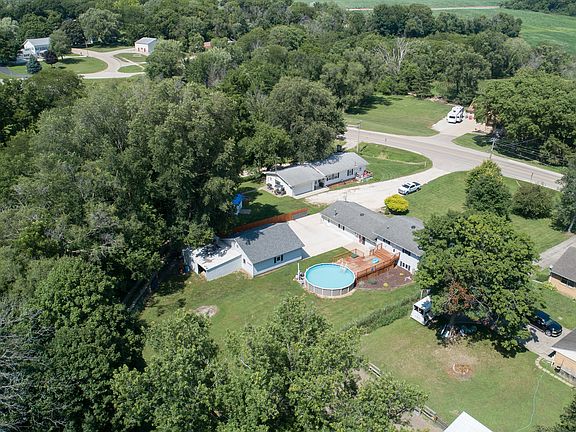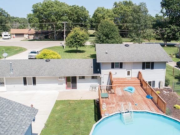 Spacious edge of town 3 bed, 2 bath home. House roof 2014. Kitchen has oak cabinets, large center island with breakfast bar. Appliances include stove, refrigerator, dishwasher and microwave. All with Mate finish. Main floor bathroom has walk in tiled shower. New wood type flooring in living room and kitchen. Tankless hot water heater. Large 2 1/2 car heated garage with new roof 2016. 24' above ground heated pool with 18x31 deck.