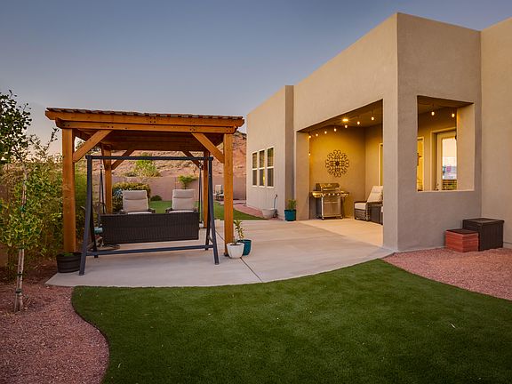 This warm, inviting home in beautiful Mariposa is located at the end of a cul-de-sac beside open space in a gated community. The open floorplan offers many options for families/guests. Spacious kitchen/dining/living area is a perfect gathering space, filled w/ natural light & offers generous counter space, gas stove, stainless appliances & walk-in pantry. Split floorplan provides privacy for large primary suite w/ double sinks, separate tub, walk-in shower & large walk-in closet w/ access to laundry room. Three additional bedrooms are each connected to a bathroom, including one Jack-n-Jill & one en suite. Beautiful office space is perfect for those who work from home. Gorgeous custom landscaped back yard w/ pergola & putting green perfect for relaxing outdoors. Three car garage.