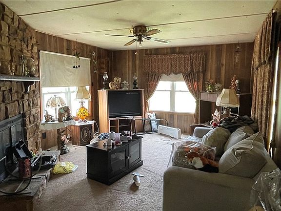 Don't miss your chance to own this affordable property situated at 5411 Hoagland Blackstub Road in Trumbull County! This 2-bedroom, 1-bath home is near Mosquito Lake, one of Ohio's largest lakes. Out in the country, this .52-acre lot is still near amenities that include fishing, camping, hunting, shopping, and dining. Outside, you will find a nice 2-car garage (28 X 24) with a workbench/electric, built in 1997, and a shed. Inside, you will find an open living room/kitchen with plenty of cabinets, counter space, and room for dining. The living room boasts a gorgeous stone fireplace that will keep you warm during the cold Ohio winters! All appliances stay with the home, including the washer and dryer in its separate laundry room.