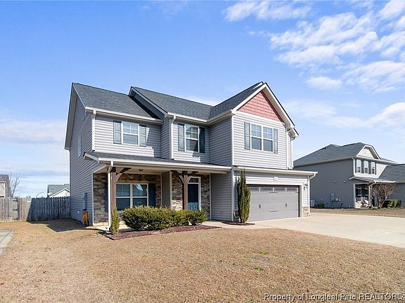 Beautiful 4 bedroom 2.5 bath home located in the highly desirable Highcroft Community. Enter off covered front porch and you'll find the formal dining off foyer with gorgeous tray ceilings. The family room is spacious with electric fireplace. The kitchen is spacious and has granite counters, center island and stainless steel appliances. All bedrooms and laundry are located upstairs. Large fenced-in backyard with fully equipped playground, ideal for outdoor gatherings. 3-car garage, for your parking and more storage space. Highcroft is a very popular community conveniently located minutes to I-295, providing quick access to the west side to the north side of town. Very close to Fort Liberty, downtown and all shopping and restaurants. This luxurious home will not last long!