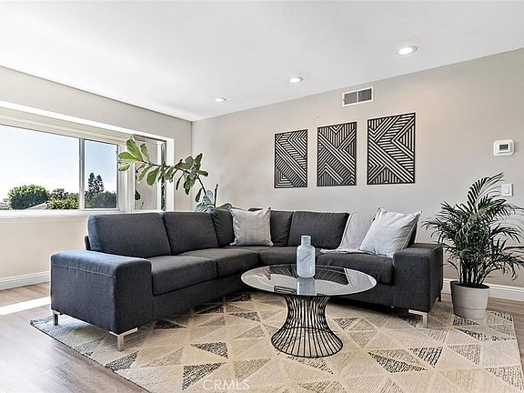 The quintessential California lifestyle awaits at 5411 Overland Drive. This stylish property is located in the prestigious Fernhill community, ideally situated within walking distance of Meadowlark Golf Course and a mere 2 miles from the sun-kissed beaches, vibrant shopping centers, and serene wetlands of Huntington Beach. This home has a beautiful entryway which ushers you to a comfortable open floor plan. The kitchen has been tastefully remodeled showcasing modern cabinets, elegant countertops, and stainless steel appliances. This floor has two large bedrooms and one bathroom. The renovated bathroom includes modern fixtures, tiled shower, and upgraded flooring and vanity. The exquisite primary bedroom exudes a bright and spacious ambiance, featuring a generously sized closet to accommodate all your wardrobe essentials. Adjacent to the kitchen and the second upstairs bedroom, you'll discover an extended patio with a charming spiral staircase leading down to the first floor outdoor patio. The private balconies offer the perfect spot to relax and recharge while indulging in lush views and cool ocean breezes. Notably, this property includes a downstairs room with an attached upgraded bathroom and its own private entrance via it’s own entry door. Further enhancements to this home include: recessed lighting, scraped ceilings, and high-quality flooring throughout. The two-car garage offers both a storage room and a convenient laundry area. Stay cool in the summer with a split- unit air conditioning system and warm in the winter with a new furnace and central heat. Residents of this tranquil community can take advantage of the pool, clubhouse, and park, all while benefiting from one of the lowest association fee in all of Huntington Beach. Don't miss the opportunity to make this remarkable property your new home