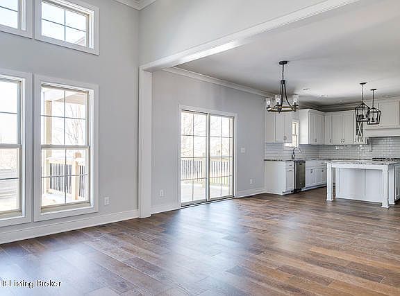 New 1.5 story stone/brick home in award winning Rock Springs. hardwood, granite, private backyard and covered deck are some of the luxury features. Kitchen features custom cabinets, center island, large pantry all open to the large dining area and great room with fireplace. The formal dining room is perfect for small and large dinner parties. Main level owner's suite offers a large walk-in closet and private bath with double bowl vanity, soaking tub and tiled shower. laundry room with folding area and mud area are off the 2-car garage. Three additional bedrooms complete the upper level. Two share a Jack and Jill bath the other has a private bath. The unfinished lower level with large 5x5 daylight windows is perfect for future living with a rec room, full bath and office.