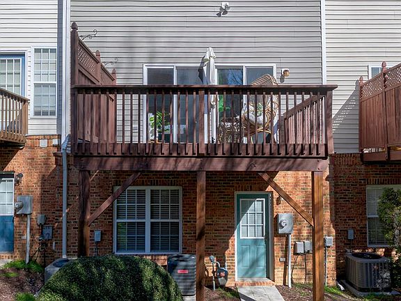Townhome in highly desirable Pinecrest off Glenwood offers easy access to everything. Lovingly maintained and updated. Double suites with full baths on the 3rd floor. New hardwood floors upstairs. Gorgeous deck outside the elegant living room with gas FP. Kitchen is spacious and efficient with stainless appliances. First floor bedroom/office/fitness/dance/art room has suspended plywood floor for happy feet. Crabtree Mall, restaurants, groceries and more only minutes away.
