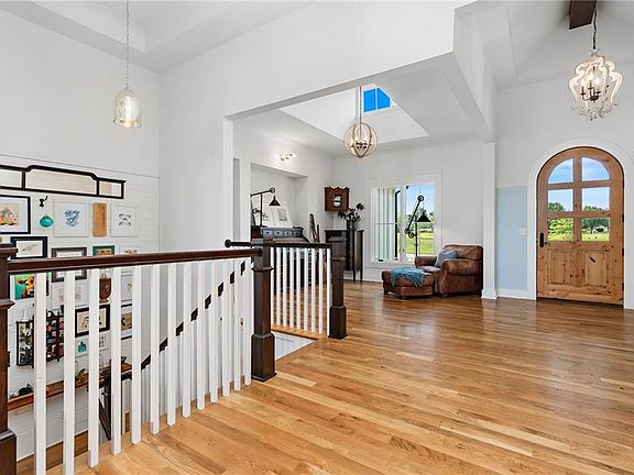 Welcome to this beautiful Reverse 1.5 Story Modern Farmhouse home located in the highly sought-after Blue Valley School District. Situated on over 3 acres of picturesque land, this property offers a serene and private retreat for those seeking a peaceful country lifestyle without compromising on modern conveniences.