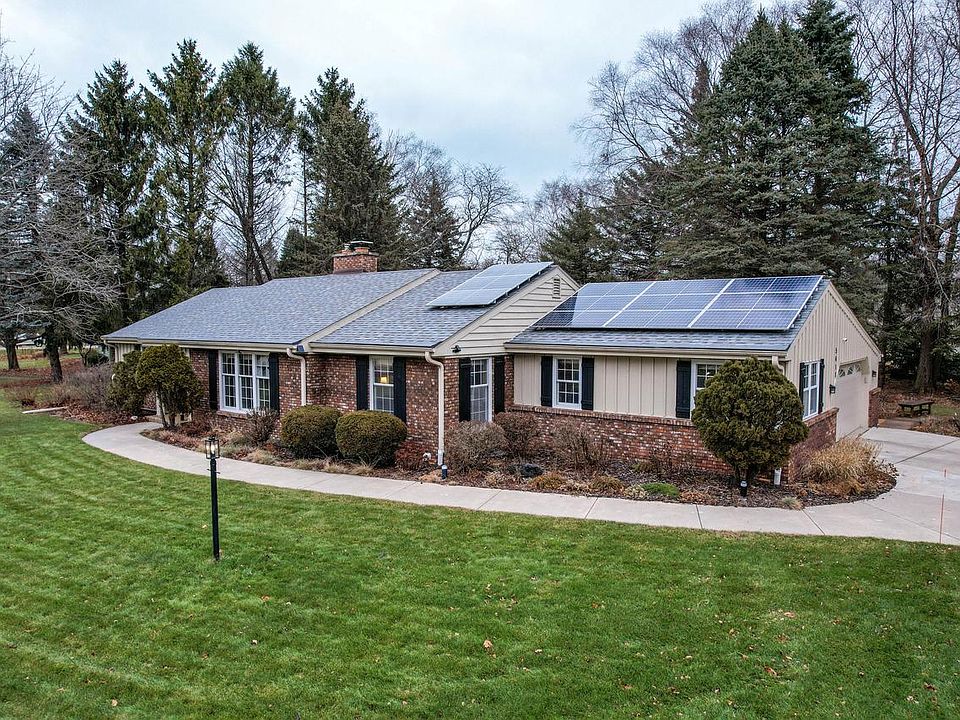 STEP UP to SOLAR POWER! THIS CHARMING WIND POINT RANCH OFFERS AN ECONOMICAL, ENERGY EFFICIENT LIFESTYLE. Formal LR and DR, crown molding and Cherrywood floors. Plaster walls and 6 panel doors. Kitchen features SS appliances, induction range and WI pantry that could be space for a main floor laundry room. Warm FR has a brick, woodburning FP, open to the kitchen and access to the huge party deck and fenced backyard. 2 spacious bedrooms and sharp remodeled full bath. Spacious office with wall of built-ins makes a perfect guest room with nearby 1/2 bath. Bright, LL rec room features a second full bath and wet bar. Furnace and AC-2022, roof and solar panels - 2018. Gorgeous, private, treelined backyard and mature landscaping. A wonderful, quiet and friendly neighborhood. Must See!