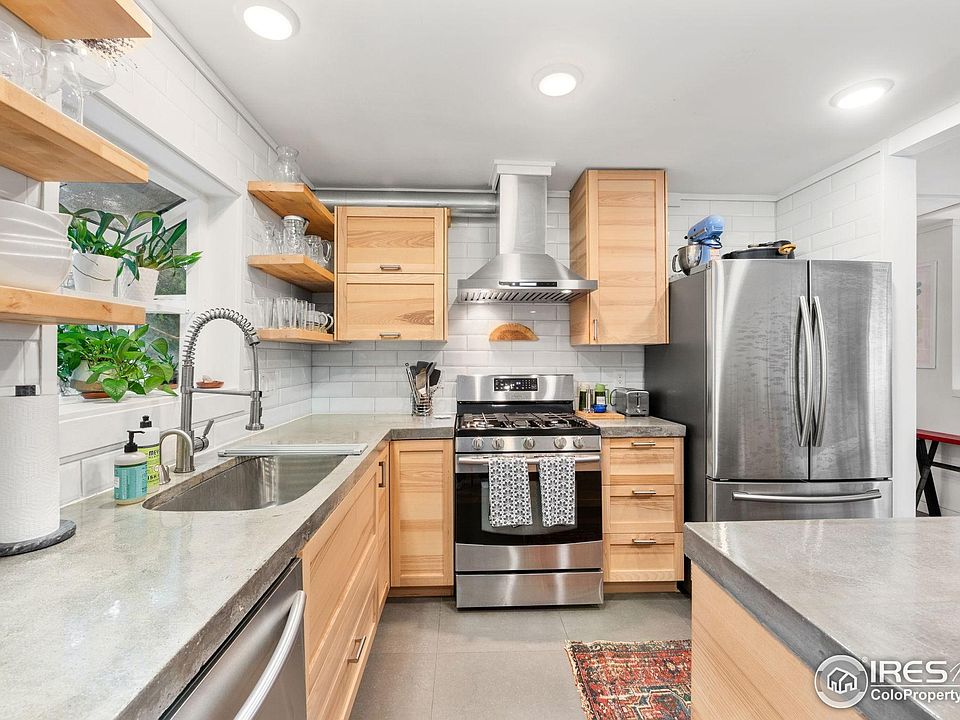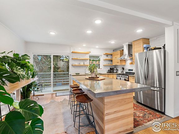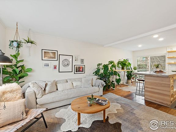 Gorgeous and move-in ready, this townhome combines modern updates with rare privacy in a convenient Boulder location. Just minutes from CU, Pearl Street, parks, trails, and restaurants - yet quietly tucked away - it offers the best of both city access and peaceful living. The open main level features a sun-filled living area which flows into the updated kitchen with polished concrete countertops, wood shelving/cabinetry, and stainless Samsung appliances including a gas range with hood, and a double-door fridge. A built-in desk and shelving add storage and flexible work-from-home options. This level is finished with a newer half bath and a brand-new washer/dryer, tucked behind a modern barn door for privacy and style. Two spacious bedrooms are located on the quiet garden level, the primary has a new custom closet and the guest room with its own storage. Naturally cooler in the summer, this level also features a modern full bath with double shower-heads, navy tile and a glass brick window for privacy and natural light. Guests consistently describe the home as comfortable, cozy, and peaceful - the perfect retreat after a day in Boulder. Two private outdoor areas include a wood fenced backyard with a new custom deck and turf for easy, water-wise living, plus a front turf patio between the condo and garage that doubles as a casual hang space. An oversized insulated garage is a rare bonus in Boulder. This property is equally appealing as a primary home, lock-and-leave second home, or investment. Custom designed furnishings available separately.