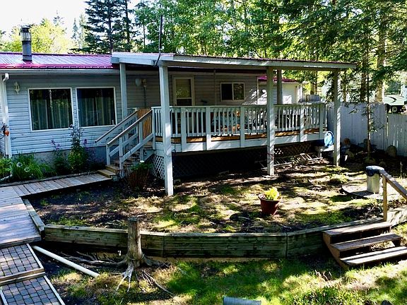 Welcome to Bay Bridge Estates, where this charming 1,186 sq ft bungalow invites you to embrace a peaceful, nature-inspired lifestyle. At its heart, the open-concept living and kitchen area boasts full-size windows framing stunning forest views, blending the outdoors in. Picture cozy evenings by the wood-burning stove, watching the seasons change. The spacious kitchen, with clean lines and modern appliances, is perfect for family meals or snacks enjoyed in the dining nook. The primary bedroom is a private retreat with abundant light, outdoor access, generous storage, and a 3 piece ensuite. A second bedroom and main bath with corner tub and sauna offer comfort for family or guests. Step onto the covered deck to enjoy your serene, treed backyard. A covered double carport provides ample parking. Here, modern comfort meets natural beauty, with the added convenience of nearby urban amenities perfect for those seeking harmony between home and nature.