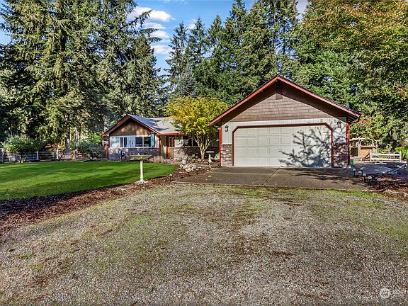 Discover this serene, park-like oasis in Rochester! Nestled on 2 acres of beautifully manicured land, this gated, fully fenced 4-bedroom, 2¾-bathroom home offers the perfect blend of comfort and style. The open kitchen and dining area flow effortlessly, ideal for gatherings and cozy dinners by the wood stove. Step outside to enjoy the expansive covered patio, perfect for relaxing or entertaining year-round. A large, versatile shop provides endless possibilities for hobbies, storage, or a workspace. Enjoy the tranquility of nature while still being conveniently close to local amenities. Make this one-of-a-kind retreat yours today!