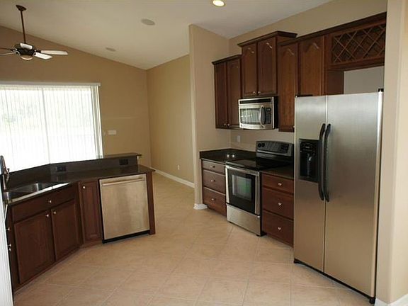 Stunning 3 BR + DEN or 4th BR, 2 baths, 3-car garage w/ all of the classy upgrades overlooking an awesome & beautiful lake with trees behind. Pocketed sliders lead to large lanai and heated swimming pool with spa for your relaxing pleasure. Open floor plan w/ 2,053 sq. ft. Zodiac Quartz kitchen counter-tops, rich 42 inch wood cabinets w/ crown molding and wine rack, over-cabinet and under-cabinet lighting, stainless steel appliances, ss under-mount sink. Large tile on the diagonal throughout main living area. Spectacular double tray Rotunda over beautiful Mosaic tile. Cathedral ceilings. Huge walk-in closet in Master BR. Surround Sound in FR and lanai, rounded corners, blinds & pre-wire for alarm system. All appliances stay, including washer & dryer. New A/C (2014), new carpeting (2015), new dishwasher (2015), interior painted (2015), new garage door openers (2015). Truly an exquisite home w/ tastefully selected upgrades. No CDD's. You will not be disappointed!