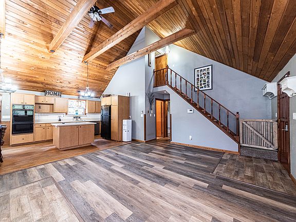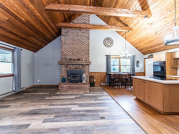 Beautiful 3 BR, 2 Full BA home surrounded by an abundance of nature on 2.28 acres. When you step into this home you will feel like you are in a mountain chalet. Cathedral wood & beam ceilings, floor to ceiling fireplace, large family room w/ floor to ceiling windows, sun room, finished walk-out basement (could be 4th BR),wrap around porch & deck.